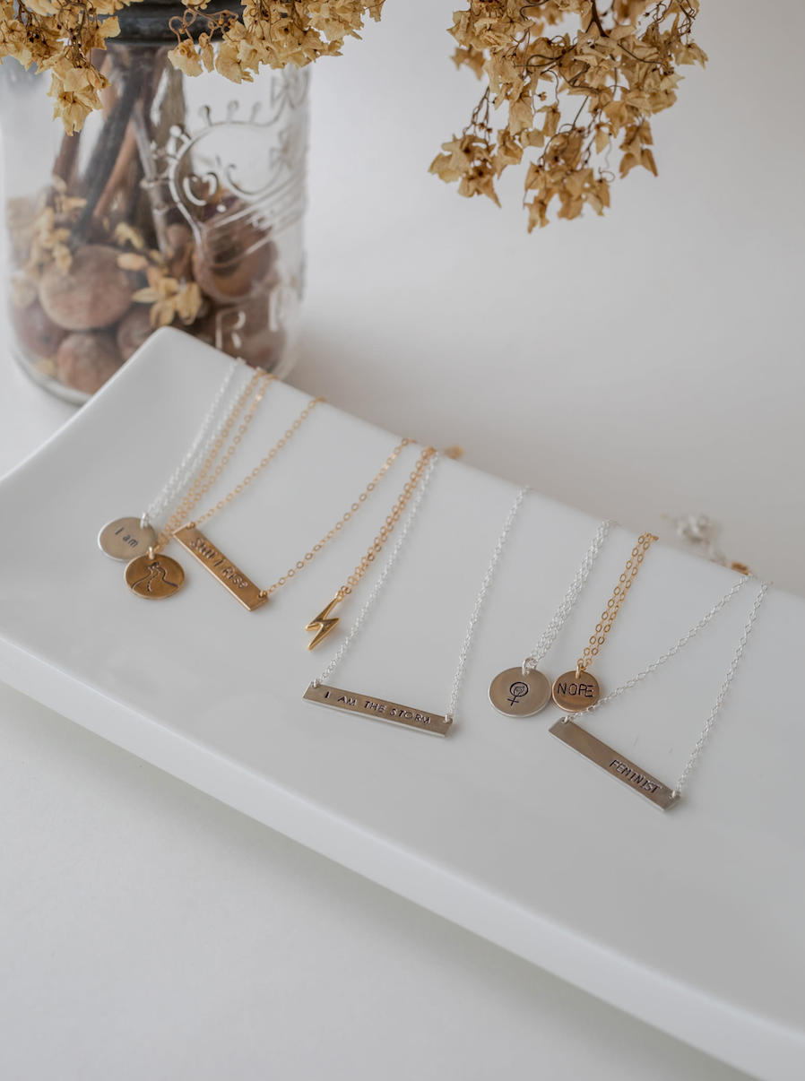 Lana and her small team of awesome humans (and two dogs) are the creators and artists behind Fierce Deer. We aim to bring strength and empowerment through jewelry, creating pieces that range from dainty and subtle to bold and colourful. Our personalized pieces create memories, share stories, and bring comfort. We believe in the power of jewelry, and love bringing people pieces that hold great meaning to them.